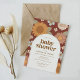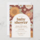 Convide amigos e família a compartilhar a alegria da chegada do seu pequeno com este convite para chá de fraldas, apresentando flores retrorreflectoras em um fundo de marrom.