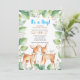 Convite para Chá de fraldas Forest Woodland Deer Floral Boy - Comemore a chegada do seu bebê precioso com este adorável e fofo 'Convite para Chás de fraldas', com dois adoráveis cercados por verde floral e folhagem. O título apresenta a caligrafia azul. O plano de fundo apresenta o padrão verde da floresta. Todos os textos estão pré-organizados para que você personalize fácil e rapidamente com os detalhes do seu chá de fraldas.