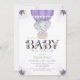 Chá de fraldas Floral do Balão de Ar Quente com Elefante Púrpura Convocação com elefante de bebê giro e balão de ar quente púrpura de cor d'água e belos florais violetas. Um convite elegante e doce para o chá de fraldas perfeito para o chá de fraldas feminino.
