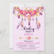 Design de cartão boémio do convite do chá de fraldas do tema com o coletor, as penas, e as flores indianos americanos do sonho da aguarela.