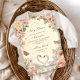 Um convite para chás de fraldas romântico que inclui dois cisnes graciosos num lago sonhador, rodeados por rosas de aquarelas moles, peonias e borboletas fluidificantes. Perfeito para celebrar a futura mãe com um tema eterno e elegante inspirado no lago Swan.