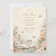 Um convite para chás de fraldas romântico que inclui dois cisnes graciosos num lago sonhador, rodeados por rosas de aquarelas moles, peonias e borboletas fluidificantes. Perfeito para celebrar a futura mãe com um tema eterno e elegante inspirado no lago Swan.
