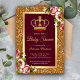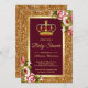 Convide seus convidados com este elegante convite de chá de fraldas com uma bela coroa vermelha em um brilho falsa de ouro e fundo floral. Basta adicionar os detalhes do seu evento neste modelo fácil de usar para torná-lo um convite de tipo único.