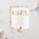 Este convite foi projetado com buquês cor-de-água cor-de-rosa com sotaques sujos de ouro e rosa de brilho que certamente impressionam seus amigos e sua família. Douradas fontes e padrões florais tanto na frente quanto no verso criam uma elegante iniciação para seu evento especial. Mostrado aqui para um Chá de fraldas, mas pode ser personalizado para qualquer evento que quiser!
