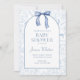Convites Chá de fraldas Floral Elegante Azul Dusty