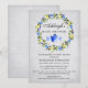 Uma bonito coroa amarela e azul de flor silvestre cobre este convite para o chá de fraldas. Três borboletas aquáticas destacam o nome da futura mãe e a frase chá de fraldas. Um azul macio, quase lá, lavagem aquosa fornece o fundo. Todo o texto pode ser facilmente alterado. Este convite faz parte da coleção de Chás de fraldas de flores selvagens de Ashleigh. Se precisar de ajuda para encontrar um item de coordenação, por favor contacte-me.