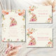 Apresentando um belo coelho rodeado por flores rosadas e cor-de-rosa suaves e um verde delicado, este design elegante é perfeito para um chá de fraldas branco, floral ou com temas de floresta. Totalmente personalizável, você pode personalizar o texto e os detalhes para criar um convite exclusivo e sincero. Ideal para uma menina ou para uma celebração neutra em termos de gênero, este encantador convite dá o tom perfeito para um evento doce e memorável!