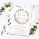 Dourado Script Greenery Floral Wreath Chá de fraldas Convite