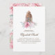 Lanterna iluminada por velas e flores cor-de-rosa, convites para bebês