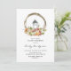 Convide a família e os amigos para o seu evento com este convite de chá de fraldas caprichoso e rústico. Apresenta a queda de aquarela na coroa floral composta por rosas, híbridos, folhagem, abóboras e lanterna com um padrão floral de queda correspondente. Perfeito para chás de fraldas de outono ou outono. Personalize adicionando eventos, nomes, data, hora, local e outros detalhes.