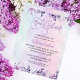 Convide seus entes queridos para um belo Chá de fraldas Lilac Floral com este convite elegante e eterno. Apresentando delicadas flores roxas de aquarela, esta design é perfeita para celebrar uma menina ou um chá neutro em termos de gênero. Ideal para chás de fraldas de primavera e jardim, este convite floral adiciona um toque suave e sofisticado ao seu evento especial. Personalize-o com os seus detalhes de eventos para criar uma manutenção única para a futura mãe!