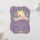 Um convite mágico de chá de fraldas unicórnio que é uma escolha maravilhosa para a mãe esperar uma menina. Uma bela silhueta de unicórnio é cercada por meia coroa de flores de aquarela e folhas delicadas com uma faixa de cor rosa "Chá de fraldas" correspondente. O contexto contrastante em roxo empoeirado adiciona estilo contemporâneo. O lado inverso do convite tem um padrão de bolinhas rosa e roxo correspondente. Edite o texto de exemplo com os detalhes do seu chá.