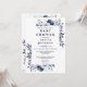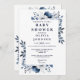 Convites Chá de fraldas Floral marinho Azul Elegante