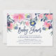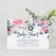 Este convite para na moda e chá de fraldas de tendência apresenta aquarela com aspecto rosa-claro e marinho e flores e folhas azuis. Usamos arte de LABFcreations.