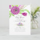 Chá de fraldas de primavera de cor d'água botânica com tipografia elegante. As flores apresentadas são ranúculus, tulipas, violetas e crocos com forte influência impressionista chinesa.