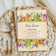 Um vibrante spray de flores de primavera para o seu convite ao Chá de fraldas. Com um charme de cabana e cores vibrantes para ajudar a fazer seu evento refletir sua própria alegria e felicidade para a ocasião. Os detalhes são facilmente personalizáveis para que você inclua suas próprias informações conforme necessário.