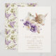 Este convite de chá de fraldas de menina bonito apresenta um bebê cabra/criança com flores roxas em aquarela. O verso apresenta um fundo verde-claro de chá com padrões florais lilases púrpuros. Personalize-o para as suas necessidades. Você pode encontrar mais coelhinhos na minha loja.
