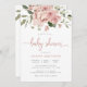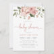 Convite para Chá de fraldas Floral Rosa Elegante. Este elegante e na moda chá de fraldas convite apresenta lindas rosas cor d'água pintadas à mão, pinceladas cor d'água, cor rosa, com verde sábio organizado em um buquê chic e moderno. A parte traseira do convite inclui o mesmo trabalho de arte.