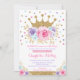Comemore sua princesa pequena com este convite vibrante que caracteriza rosas modernos da aguarela no rosa quente, roxo e azul, polvilha de confetes coloridos e de uma coroa sparkly do ouro.