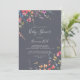 Este clássico convite azul para chás de fraldas florais selvagens é perfeito para um chá de fraldas rústico. A design apresenta flores silvestres brancas, amarelas, roxas e brancas com folhagem em fundo de rosa e aquarela verde.