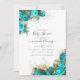 Turquesa e flores-chic-shabby-douradas convite para chá de fraldas com tipografia elegante de escrita manual.