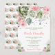 Belo chá de panela com arranjos florais verdes e cor-de-rosa. Perfeito para um chá de fraldas. As palavras podem ser alteradas para se adequarem aos seus próprios detalhes ou requisitos
