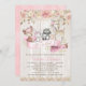 Chá de fraldas de pinceladas de rosa com lindas flores cor-de-rosa e douradas e adoráveis raposa de madeira, veado, guaxinim, coelho, coruja e esquilo num fundo de madeira rústica. Este adorável convite para chás de fraldas de floresta é facilmente personalizado para o seu evento simplesmente adicionando seus detalhes, e você pode escolher uma aquarela ou um fundo de madeira para o lado de trás. Simplesmente exclua a camada que você não deseja.