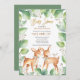Convite para Chá de fraldas Florestal de Veado Verde Floral - Comemore a chegada do seu bebê precioso com este adorável e fofo "Convite para Chás de fraldas" com dois adoráveis veados florestais cercados por verde floral e folhagem. O título apresenta folha de ouro como a caligrafia. O fundo apresenta o padrão verde da floresta. Todos os textos estão pré-organizados para que você personalize fácil e rapidamente com os detalhes do seu chá de fraldas.