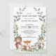 Convide seus hóspedes com este adorável convite para chás de fraldas sobre florestas. Use as ferramentas de design para editar o texto, alterar a cor e o estilo da fonte para criar um design de convite exclusivo.