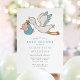 Celebre a chegada de um pequeno com este encantador convite para chás de fraldas de cegos voadores. Apresentando uma ilustração moderna de um carregando de cegos, um menino bebê em um pacote azul, este convite é perfeito para um tema clássico de chá de fraldas. A design e as cores encantadoras fazem dela uma escolha encantadora para os pais esperarem um bebê, acrescentando um toque lúgubre ao evento especial.