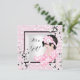 Chá de fraldas elegante Garota-Bebê-Cute, rendas cor-de-rosa com Bolinhas, Brilhantes brancos, Flores Asiáticas de Flor de Cereja com Preto e Branco "É uma Garota!"