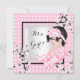 Chá de fraldas elegante Garota-Bebê-Cute, Rosa com Bolinhas, Brilhos Brancos, Flores Asiáticas de Flor-Cerejeira com Preto e Branco "É uma Garota!"