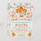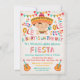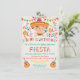 Convites populares e divertidos de Arte popular mexicana Fiesta Baby Shower. Possui um bebê bonito em um sombrero, banners, maracas, guitarras e fontes divertidas. Fundo Faux linen.