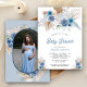 Convites Chá de fraldas Fotográfico Dusty Blue Floral Boho