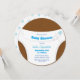 Um convite de chá de fraldas com uma fralda de bebê num bebê de pele castanha. O texto e o pino de segurança da fralda são azuis. Todo o texto é personalizável. O tom da capa de fundo pode ser personalizado.