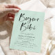 Convite de chá de fraldas moderno e elegante com "Bonjour Bebe" em uma letra de script de cor d'água com letra de tendência contra um fundo verde-menta. Personalize os convites para chuveiros de bebês do templo francês adicionando seus detalhes de chá para um convite que certamente impressionará! O verso do convite apresenta um design de faixa de aquarela preta.