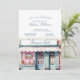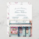 Um charmoso convite de chá de fraldas, inspirado em boutique francês, que apresenta um design de vitrine de aquarela e fontes elegantes de script. Acentuado com os pastéis rosebuds e macarões nas costas, este tema de Bonjour Bébé traz uma sensação romântica e parisiense à sua celebração. Perfeito por receber um chá chic e feminino com uma doce reviravolta francesa.