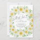 Bonito convite para chás de fraldas, com uma coroa floral margarida e uma coordenação de volta para um toque especial extra.