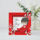 Chá de fraldas Elegante Vermelho, Vermelho, Vermelho com Brilhos Brancos, Flores Asiáticas de Flor de Cereja com Preto e Branco "É um Menino!"