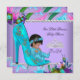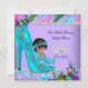 Convites Chá de fraldas Garota Rosa Teal Azul Calçado Roxo