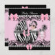 Convites Chá de fraldas, Gatinha Rosa Zebra Lace 2