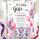 Convites Chá de fraldas Gelado Elefante-Rosa Balões-Rosa