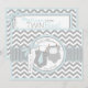 A viga chique das cinzas e do branco imprime com contraste brandamente azul e uma ligação em ponte bonito das bolinhas com laço e laço e arco 3D-look e fita para o cartão gêmeo do convite do chá de fraldas dos meninos.