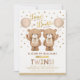 Convites Chá de fraldas Gêmeo do Urso Vermelho Castanho