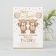 Este adorável convite temático do ursinho coloca um sorriso nos rostos dos seus hóspedes! O esquema de cores castanho, bege e dourado torna esta design perfeita para um chá de fraldas gêmeo neutro em termos de gênero. Personalize o convite com seus detalhes e se quiser reorganizar o estilo e posicionamento do texto, pressione o botão "Clique para personalizar mais".