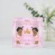 Chá de fraldas Vintage Twin Girls, para raparigas. Moldura floral princesa rosa com Dourada Tiara e delicada renda rosa e arcos. chá de fraldas bonito e fofo. Afro-Americano Étnico