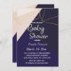 Convites Chá de fraldas geométrico azul e marinho branco ro