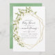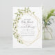 A moda verde e branca da água deixa chá de fraldas convite com moldura geométrica dourada e tipografia elegante de escrita manual.