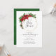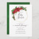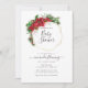 Trendy rustic christmas chá de fraldas convite com moldura geométrica dourada e tipografia manuscrita com sinos de trenó, flores de poinsettia, holly, concha e pinheiro.