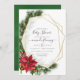 Trendy rustic christmas chá de fraldas convite com moldura geométrica dourada e tipografia elegante com sinos de trenó, flores de poinsettia, sagrada, névoa e pinheiro.